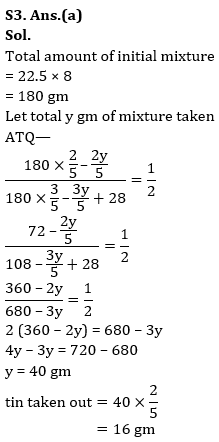 Q10. A and B are two alloys which were made by mixing iron and copper in the ratio of 3 : 5 and 5 : 9 respectively. If 60 grams of alloy A and X grams of alloy B are melted and mixed to form another alloy C, what is the value of X if the ratio of iron and copper in the new alloy is 35 : 61 ?