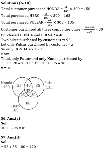 Directions (6-10): In an exhibition of bikes there were three companies HONDA, PULSAR and HERO who introduced their models in the exhibition and it is found at the last of the exhibition that total 300 customers have visited exhibition. 50% customers purchased HONDA; 55% customers purchased HERO; 45% customers purchased PULSAR. 20% of customers who purchased HONDA also purchased other two brands. Customers who purchased any of two brands are 95. Customers of only HONDA are 20 more than that of only PULSAR. Customers who purchased only HONDA and PULSAR are 40.