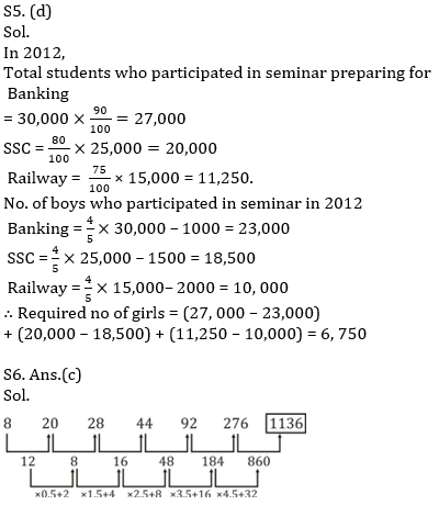 Q5. In 2012 the career power had organized the seminar in which the total no. of student participating in seminar who are preparing for bank, SSC and Railway exam was 10%, 20% and 25% less than that in 2013 respectively and total no. of boys who participated in the seminar in year 2012 preparing for Bank, SSC and railway exam were 1000, 1500 and 2000 less than that in 2013 respectively. Find the total no. of girls participated in seminar in 2012 preparing for Bank, SSC and Railway exam together?