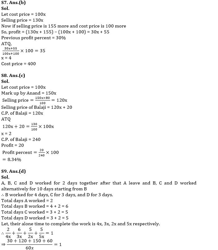 Q7. An article is sold at 30% profit. Had it been sold at Rs. 155 more than previous selling price and the cost price were also increased by Rs. 100 then profit percent would have been 5% more. Find CP of the article.