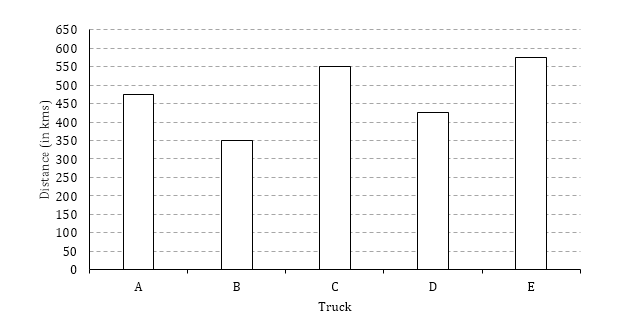 Given graph shows distance (in km) travelled by five different trucks in in a day.