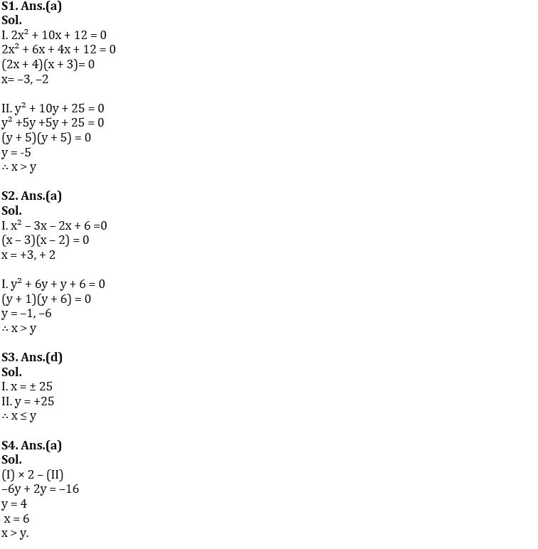Directions (6-10):- In each of the following questions, two equations (I) and (II) are given. Solve the equations and mark the correct option: