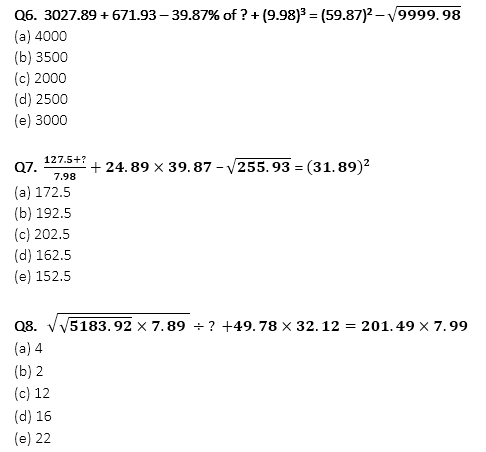 Directions (6-10): Calculate the approximate value (?) of the given questions: