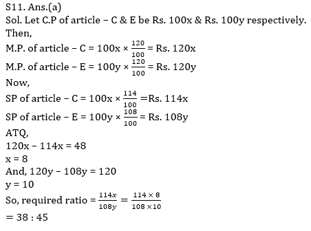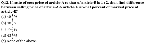 Q11. If discount allowed on article-C & E is Rs.48 & Rs.120 respectively, then find ratio of selling price of article-C to selling price of article-E.