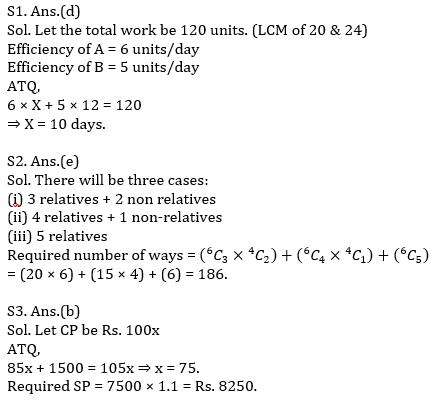 Q1. Two Men A alone & B alone can do a work in 20 days & 24 days respectively. Both started the work simultaneously and after X days A leaves the work & the whole work completed in 12 days. Find X.