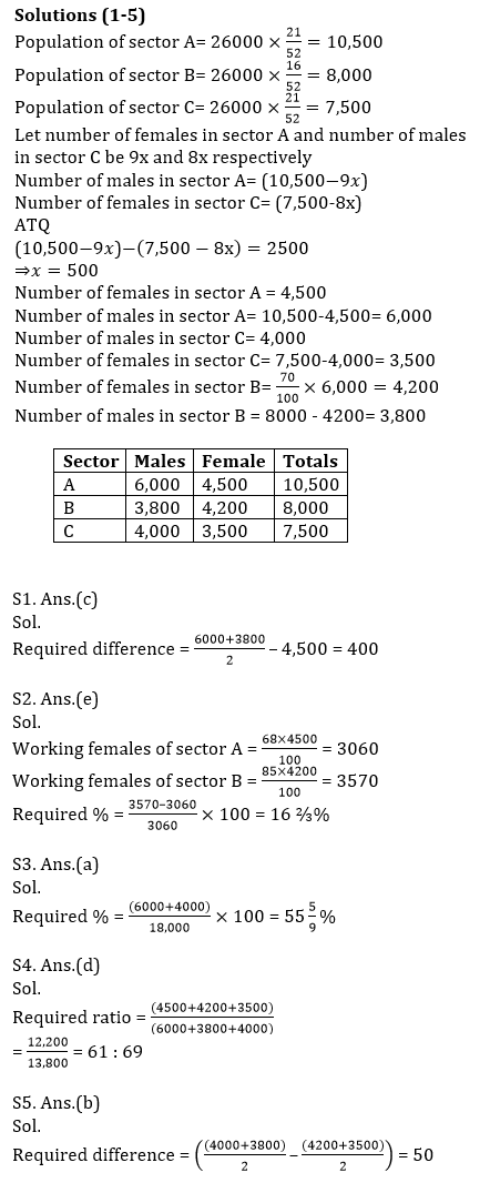 Q5. The average of male population of sector B and C is how much more or less than average of female population of these two sectors.