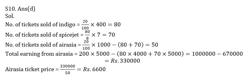 Q10. At PayTm, indigo ticket is priced at Rs. 4000 while Spicejet ticket is priced at Rs. 5000. If only indigo, spicejet & air asia tickets are available at Paytm and no ticket left unsold. Find the ticket price of air asia if average ticket price at Paytm is Rs. 5000.