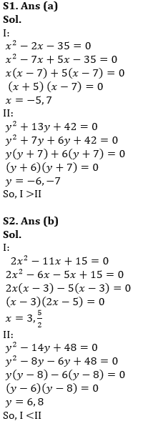 Directions (1-15): Given below in each question two quadratic equations are given. Please solve each quantity and compare both of them and answer accordingly.