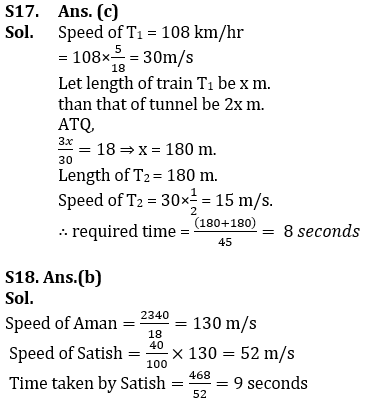 Q18. Speed of Satish is 40% of speed of Aman. Aman covers 2340 m in 18 seconds. Find in how much time Satish can cover 468 m.