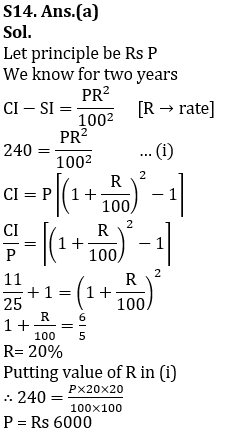 Q14. Ratio between principle to C.I. for two years is 25 :11. Find the principle if difference between CI & SI for two years is given as Rs 240?