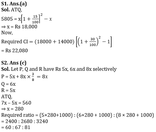 Q2. Three friends P, Q and R have amount in the ratio of 5 : 6 : 8. If R gives 37½% of his amount to P then the difference of the amount left with R and the average of the amount of P and Q is Rs 560. Find the ratio of their initial amount after Rs 1000 is added to each of them.
