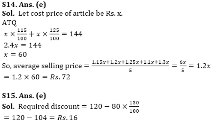 Q15. Find the discount given by shopkeeper E if cost price of article be Rs. 80.