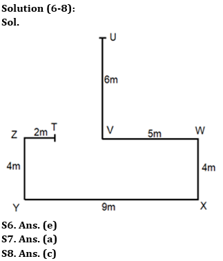 Nitin started walking from point U in south direction. After walking 6m he turns left from point V and walks for 5m till point W. He then turns right and walks for 4m till point X and then turns right and walks for 9m till point Y. He then turns right and walks for 4m till point Z and then turns right and walks for 2m till point T.