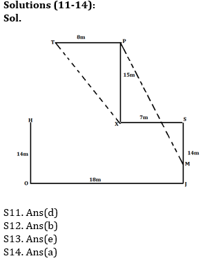 Ankur starts his journey from point T, walks 8m towards East to reached at point P, then takes a right turn and walks for 15m to reach point X. From point X he takes a left turn and walks for 7m to reach at point S, from point S, he takes a right turn and walks 14m to reach at point J, then takes a right turn and walks 18m to reach point O. From point O, He walks 14m in north direction and reached point H.
