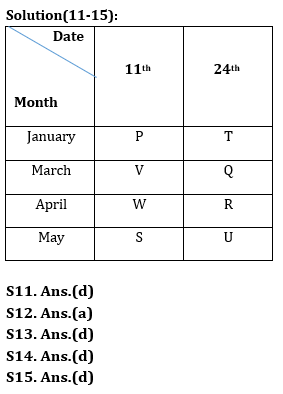 Eight persons P, Q, R, S, T, U, V and W are going on vacation at two different dates i.e. 11th , 24th on four months i.e. January, March, April and May but not necessary in same order.