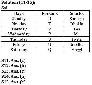 Seven persons P, Q, R, S, T, U and V attend the seminar on one of the days in a week from Sunday to Saturday. Each of them likes different snacks i.e., Samosa, Noodles, Maggi, Pasta, Idli, Dhokla and Tea but not in the same order.