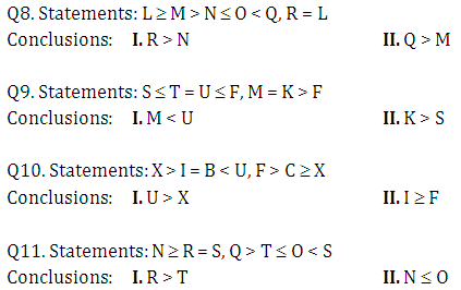 Directions (8-11): In these questions, a relationship between different elements is shown in the statements. The statements are followed by two conclusions. Give answer