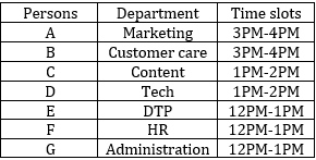 Q6. Which of the following represents the group of persons having break in 12PM-1PM slot?