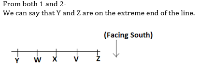 Q8. Among V, W, X, Y and Z, seated in a straight line facing south, who sits at the left extreme end of the row? I. W sits second to right of V. Z is not immediate neighbor of Y. II. V sits third to left of Y. W sits on the immediate right of X.