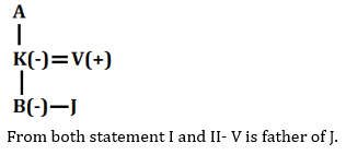 Q13. How is V related to J? I. K is daughter of A, and B is daughter of V. II. K is mother of B who is sister of J.