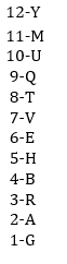 First 12 numbers are written from bottom to top. The letters of word ‘BEAUTY’ are written in alphabetical order against each multiple of 2 (One letter against one number) from bottom to top. There are 2 letters between E and R. There are as many letters between V and Q as between V and H. There are 3 letters between R and V. R is not against number 9. M is above G and Q is above V (No letter is repeated against any number).