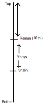 Q15. There are 56 students in a class and the ratio of Boys and Girls are 5:3. Raman’s rank is 16th from the top and there are only 9 boys sitting in between Raman and Shalini, who is a girl and sitting behind Raman. Then how many girls are sitting ahead of Shalini?