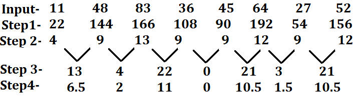 In step 1- the odd numbers are multiplied by 2 and the even numbers are multiplied by 3.