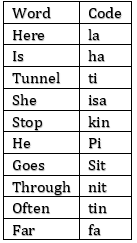 Q32. Which of the following is the code for ‘goes here far stop’?