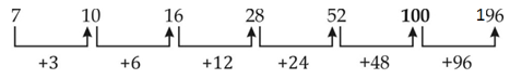 Q15. 7, 10, 16, 28, 52, ?, 196