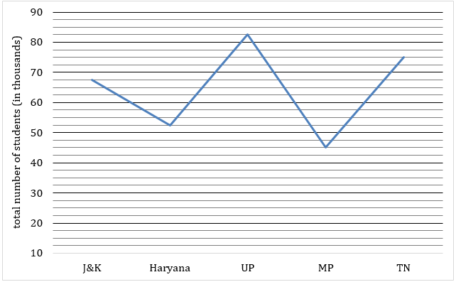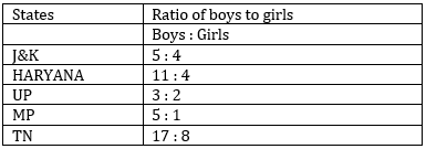 Directions (6- 10): The following line graph and table show the total number of students who were appeared for UPSC Pre exam in 2018 from five different states and ratio of Boys to girls in them from five different states of India. Study the graph carefully to answer the following questions.