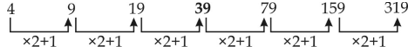 Q12. 4, 9, 19, ?, 79, 159, 319