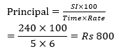 Q5. A sum of money fetches Rs 240 as simple interest at the rate of 5 p.c.p.a. after 6 years. What is that sum?