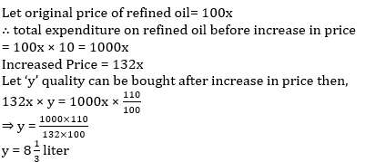 Q3. The price of refined oil increases by 32%, therefore the expenditure on refined oil increase by 10%. If 10 liter refined oil was bought earlier, then what is the quantity that can be buy now?
