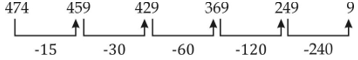 Q14. 474, 459, 429, 369, 249, ?