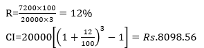 Q2. The simple interest accrued on an amount of Rs. 20000 at the end of 3 years is Rs. 7200. What would be the compound interest accrued on the same amount at the same rate in the same period?