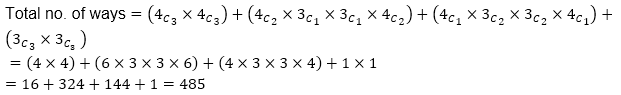 Q6. A man has 7 relatives. 4 of them are ladies and 3 gentleman; his wife also has 7 relatives. 3 of them are ladies and rest gentleman. In how many ways can they invite 3 ladies and 3 gentleman for a dinner party so that there are 3 of the man’s relatives and 3 of the wife’s relatives?