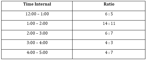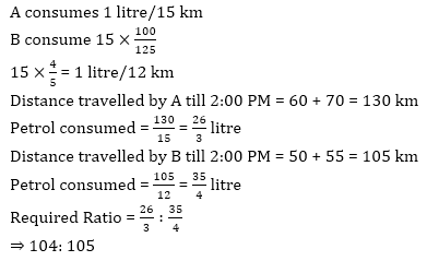 Q5. If A consumes 1litre petrol for every 15 km, and if A is 25% more economic than B. What is the ratio of petrol consumed by them till2:00PM?