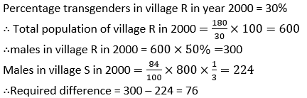 Q7. If number of transgenders in village R in year 2000 is 180. And ratio of males and females in village S in year 2000 is 1:2. Then find the difference of males in village R and village S?
