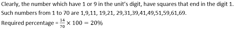 Q3. What percentage of numbers from 1 to 70 have squares that end in the digit 1?
