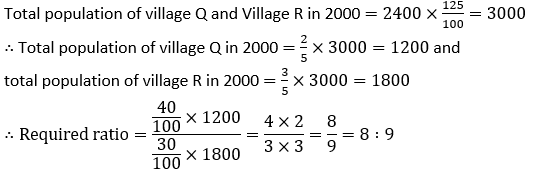 Q8. If total population of village Q and village R together in year 2000 is 25% more than the total population of village P in year 2000. And ratio of total population of village Q and village R in year 2000 is 2 : 3. Then find the ratio of males in village Q to transgenders in village R in year 2000?