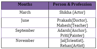 Priti, Shikha and Rehan are planning for a vacation on four different months