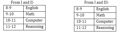 Subjects namely Reasoning, Computer, Mathematics and English were taught in
