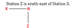 ‘R' is to the North of Station ‘Z’ and to the East of Station ‘X'.