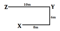 Rahul started his journey from point X, he walks 8 m in the east direction, after that he turns 90-degree anticlockwise direction and walks 6m to reach at point Y. From point Y, he turns to his left and walks 10m to reach at point Z.