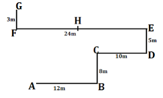 Q8. If a person starts walking from pillar B and stop pillar H, what is the total distance travelled by him?