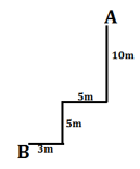 Q1. A person started walking from point A towards South direction. After walking 10 m he took a right turn and walked 5m. He then took a left turn and walked 5m. He again took a right turn and walked 3m meters and stopped at point B. Now how far and in which direction was he from starting point?