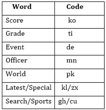 ‘score grade search sports’ is written as ‘ko ti gh cu’.