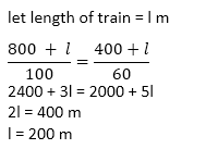 Q8. A train passes two bridges of lengths 800 m and 400 m in 100 seconds and 60 second respectively. The length of the train is: