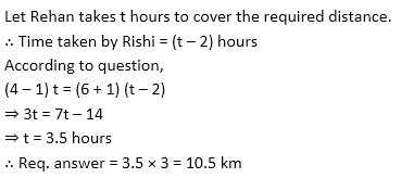 Q10. Rehan takes 2 hours more time in swimming in upstream than Rishi swimming in downstream between two points A and B. If speed of Rehan and Rishi in still water is 4 km/hr and 6 km/hr respectively and speed of current is 1 km/hr then find the distance between A and B.