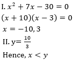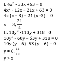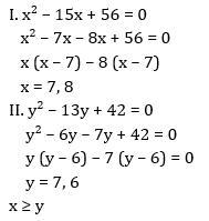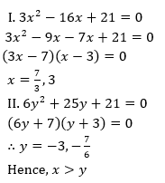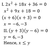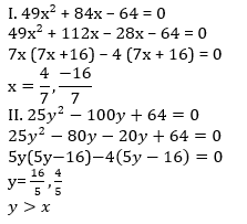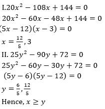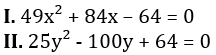 Directions (1-5): In each of these questions, two equations (I) and (II) are given. You have to solve both the equations and give answer
